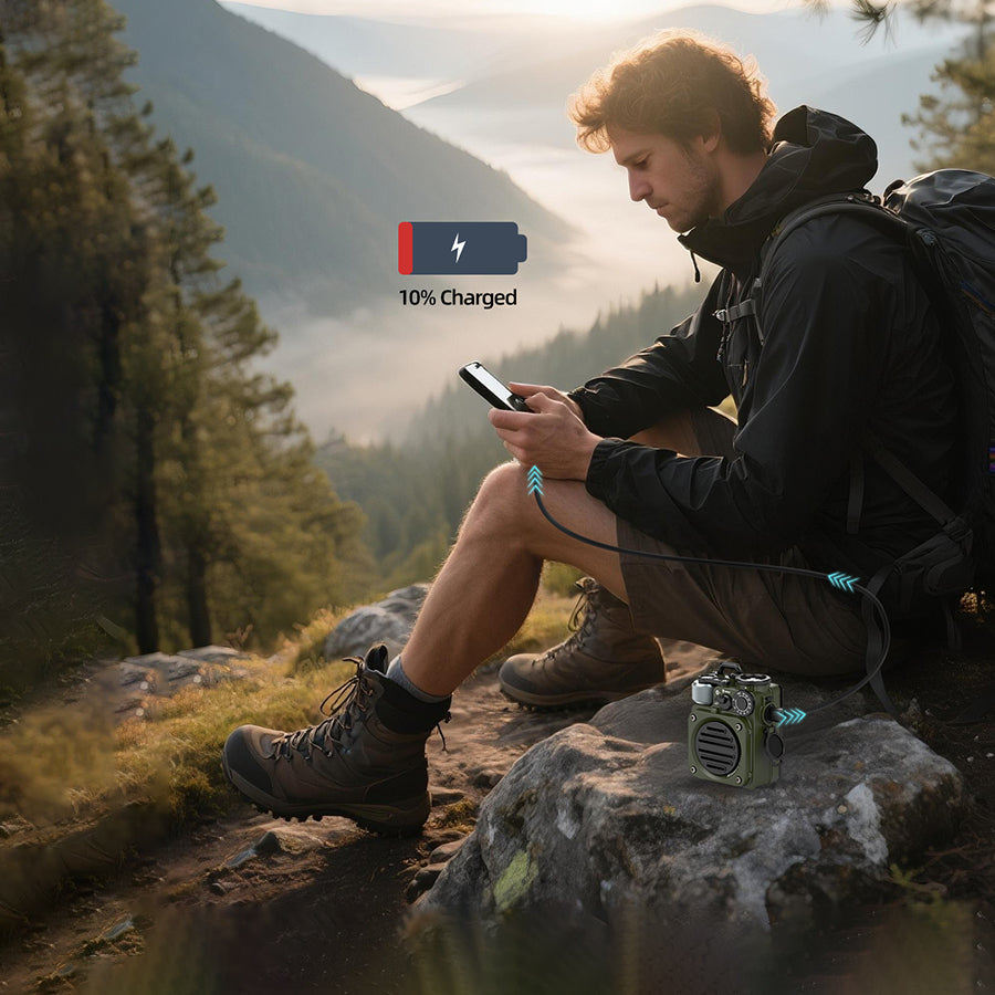 - FM Radio: The Wild Mini 3.0’s built-in FM radio keeps you connected to music, news, and weather updates—even off-grid. Its high-sensitivity tuner and metal antenna ensure crisp reception in remote areas, while the rugged design withstands outdoor adventures.